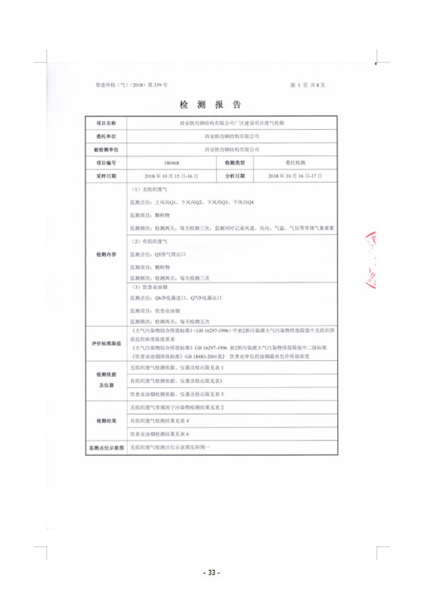 西安鐵均鋼構(gòu)廠區(qū)建設(shè)-驗收監(jiān)測報告(廢水、廢氣)